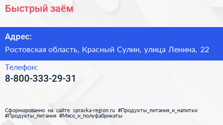Быстрый заём по адресу Ростовская область, Красный Сулин, улица Ленина, 22 в дальнейшем Организация, размещена в следующих категориях:
