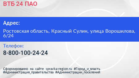 ВТБ 24, ПАО по адресу Ростовская область, Красный Сулин, улица Ворошилова, 6/24 в дальнейшем Организация, размещена в следующих категориях: