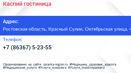 Каспий, гостиница по адресу Ростовская область, Красный Сулин, Октябрьская улица, 4 в дальнейшем Организация, размещена в следующих категориях: