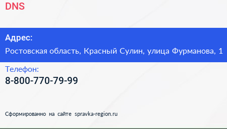 DNS по адресу Ростовская область, Красный Сулин, улица Фурманова, 1 в дальнейшем Организация, размещена в следующих категориях: