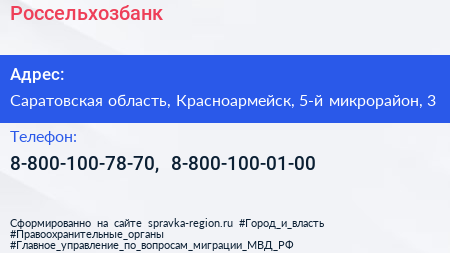 Россельхозбанк по адресу Саратовская область, Красноармейск, 5-й микрорайон, 3 в дальнейшем Организация, размещена в следующих категориях: