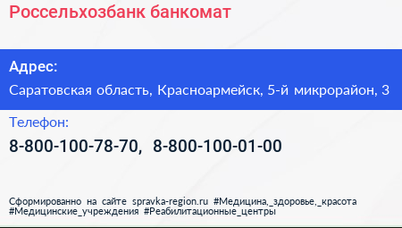 Россельхозбанк, банкомат по адресу Саратовская область, Красноармейск, 5-й микрорайон, 3 в дальнейшем Организация, размещена в следующих категориях: