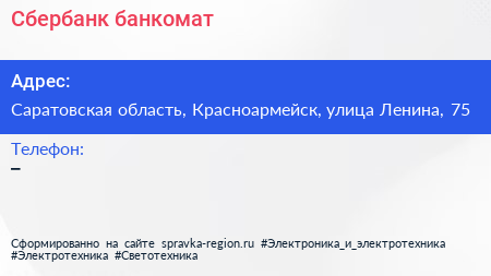 Сбербанк, банкомат по адресу Саратовская область, Красноармейск, улица Ленина, 75 в дальнейшем Организация, размещена в следующих категориях: