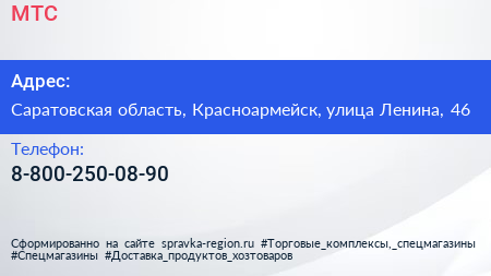 МТС по адресу Саратовская область, Красноармейск, улица Ленина, 46 в дальнейшем Организация, размещена в следующих категориях: