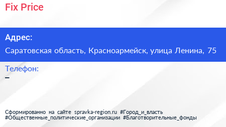 Fix Price по адресу Саратовская область, Красноармейск, улица Ленина, 75 в дальнейшем Организация, размещена в следующих категориях: