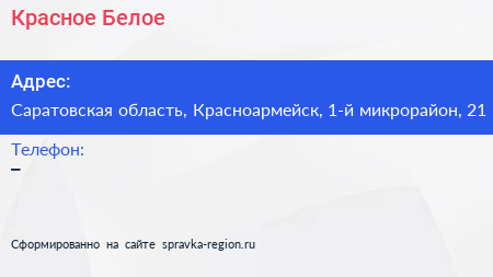 Красное & Белое по адресу Саратовская область, Красноармейск, 1-й микрорайон, 21 в дальнейшем Организация, размещена в следующих категориях: