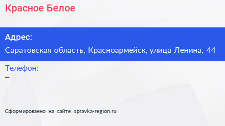 Красное & Белое по адресу Саратовская область, Красноармейск, улица Ленина, 44 в дальнейшем Организация, размещена в следующих категориях: