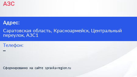 АЗС по адресу Саратовская область, Красноармейск, Центральный переулок, АЗС1 в дальнейшем Организация, размещена в следующих категориях: