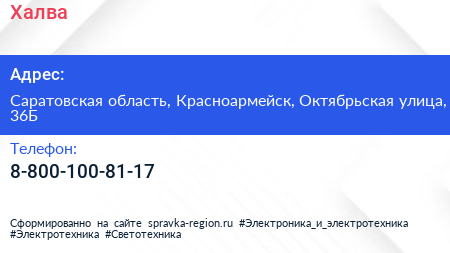 Халва по адресу Саратовская область, Красноармейск, Октябрьская улица, 36Б в дальнейшем Организация, размещена в следующих категориях: