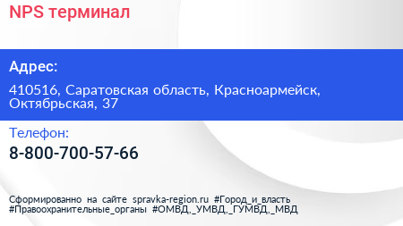 NPS, терминал по адресу 410516, Саратовская область, Красноармейск, Октябрьская, 37 в дальнейшем Организация, размещена в следующих категориях: