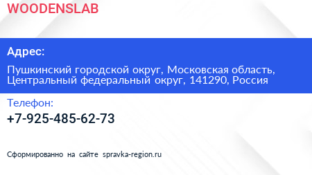 WOODENSLAB по адресу Пушкинский городской округ, Московская область, Центральный федеральный округ, 141290, Россия в дальнейшем Организация, размещена в следующих категориях:
