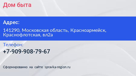 Дом быта по адресу 141290, Московская область, Красноармейск, Краснофлотская, вл2а в дальнейшем Организация, размещена в следующих категориях: