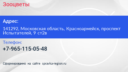 Зооцветы по адресу 141292, Московская область, Красноармейск, проспект Испытателей, 9 ст2в в дальнейшем Организация, размещена в следующих категориях: