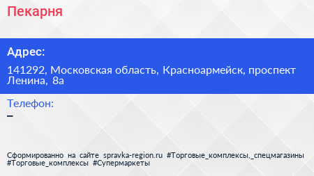 Пекарня по адресу 141292, Московская область, Красноармейск, проспект Ленина, 8а в дальнейшем Организация, размещена в следующих категориях: