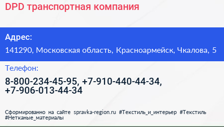 DPD, транспортная компания по адресу 141290, Московская область, Красноармейск, Чкалова, 5 в дальнейшем Организация, размещена в следующих категориях: