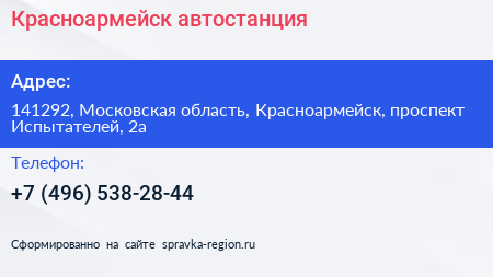 Красноармейск, автостанция по адресу 141292, Московская область, Красноармейск, проспект Испытателей, 2а в дальнейшем Организация, размещена в следующих категориях: