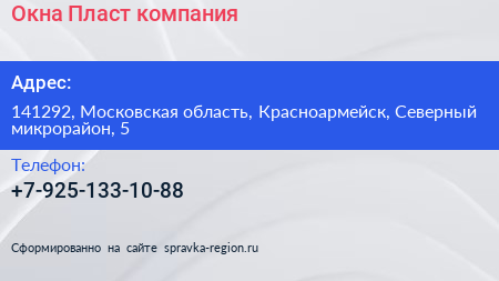 Окна Пласт, компания по адресу 141292, Московская область, Красноармейск, Северный микрорайон, 5 в дальнейшем Организация, размещена в следующих категориях: