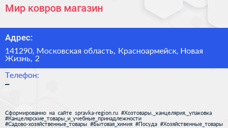 Мир ковров, магазин по адресу 141290, Московская область, Красноармейск, Новая Жизнь, 2 в дальнейшем Организация, размещена в следующих категориях: