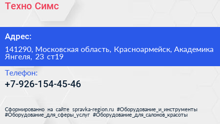 Техно Симс по адресу 141290, Московская область, Красноармейск, Академика Янгеля, 23 ст19 в дальнейшем Организация, размещена в следующих категориях: