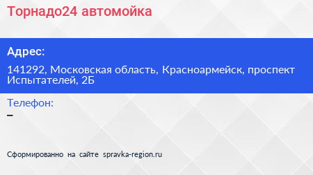 Торнадо24, автомойка по адресу 141292, Московская область, Красноармейск, проспект Испытателей, 2Б в дальнейшем Организация, размещена в следующих категориях: