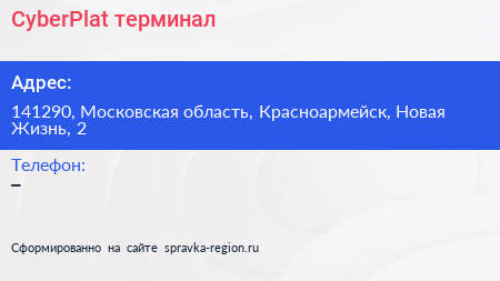 CyberPlat, терминал по адресу 141290, Московская область, Красноармейск, Новая Жизнь, 2 в дальнейшем Организация, размещена в следующих категориях: