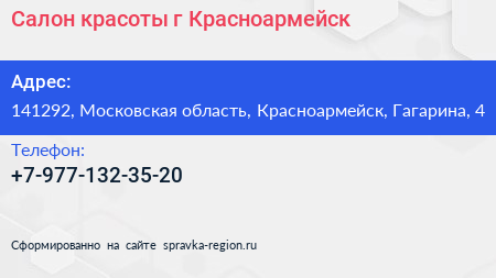Салон красоты, г. Красноармейск по адресу 141292, Московская область, Красноармейск, Гагарина, 4 в дальнейшем Организация, размещена в следующих категориях: