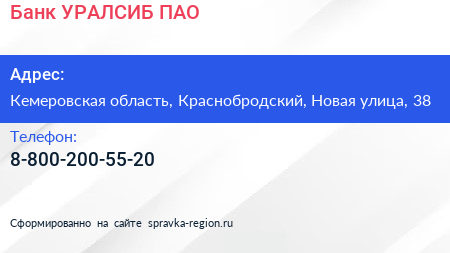 Банк УРАЛСИБ, ПАО по адресу Кемеровская область, Краснобродский, Новая улица, 38 в дальнейшем Организация, размещена в следующих категориях: