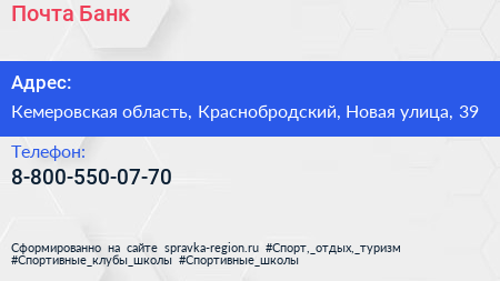 Почта Банк по адресу Кемеровская область, Краснобродский, Новая улица, 39 в дальнейшем Организация, размещена в следующих категориях: