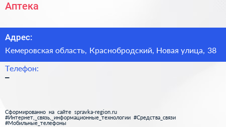 Аптека по адресу Кемеровская область, Краснобродский, Новая улица, 38 в дальнейшем Организация, размещена в следующих категориях: