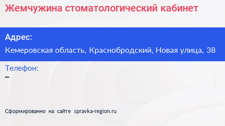 Жемчужина, стоматологический кабинет по адресу Кемеровская область, Краснобродский, Новая улица, 38 в дальнейшем Организация, размещена в следующих категориях: