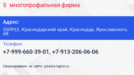 5+, многопрофильная фирма по адресу 350912, Краснодарский край, Краснодар, Ярославского, 68 в дальнейшем Организация, размещена в следующих категориях: