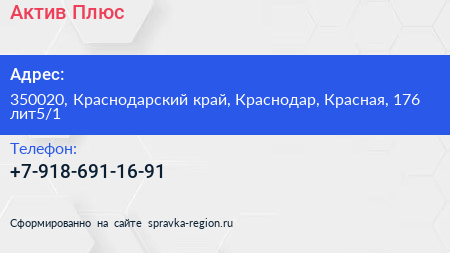 Актив Плюс по адресу 350020, Краснодарский край, Краснодар, Красная, 176 лит5/1 в дальнейшем Организация, размещена в следующих категориях: