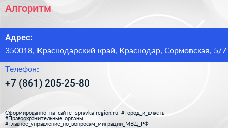Алгоритм по адресу 350018, Краснодарский край, Краснодар, Сормовская, 5/7 в дальнейшем Организация, размещена в следующих категориях: