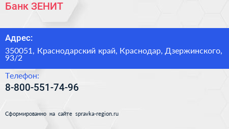 Банк ЗЕНИТ по адресу 350051, Краснодарский край, Краснодар, Дзержинского, 93/2 в дальнейшем Организация, размещена в следующих категориях: