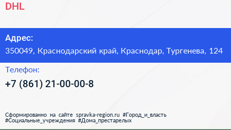 DHL по адресу 350049, Краснодарский край, Краснодар, Тургенева, 124 в дальнейшем Организация, размещена в следующих категориях:
