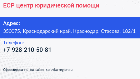 ЕСР, центр юридической помощи по адресу 350075, Краснодарский край, Краснодар, Стасова, 182/1 в дальнейшем Организация, размещена в следующих категориях:
