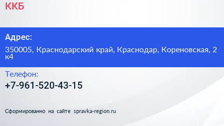 ККБ по адресу 350005, Краснодарский край, Краснодар, Кореновская, 2 к4 в дальнейшем Организация, размещена в следующих категориях: