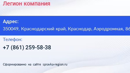 Легион, компания по адресу 350049, Краснодарский край, Краснодар, Аэродромная, 86 в дальнейшем Организация, размещена в следующих категориях: