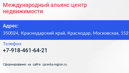 Международный альянс, центр недвижимости по адресу 350024, Краснодарский край, Краснодар, Московская, 152 в дальнейшем Организация, размещена в следующих категориях: