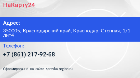 НаКарту24 по адресу 350005, Краснодарский край, Краснодар, Степная, 1/1 лит4 в дальнейшем Организация, размещена в следующих категориях: