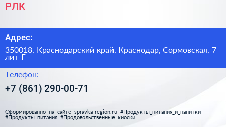 РЛК по адресу 350018, Краснодарский край, Краснодар, Сормовская, 7 лит Г в дальнейшем Организация, размещена в следующих категориях: