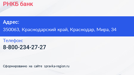 РНКБ, банк по адресу 350063, Краснодарский край, Краснодар, Мира, 34 в дальнейшем Организация, размещена в следующих категориях: