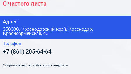 С чистого листа по адресу 350000, Краснодарский край, Краснодар, Красноармейская, 43 в дальнейшем Организация, размещена в следующих категориях: