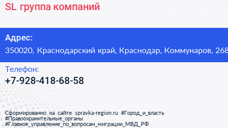 SL, группа компаний по адресу 350020, Краснодарский край, Краснодар, Коммунаров, 268 в дальнейшем Организация, размещена в следующих категориях: