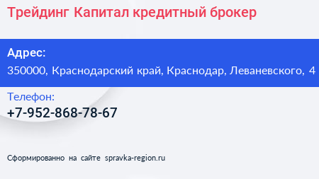 Трейдинг Капитал, кредитный брокер по адресу 350000, Краснодарский край, Краснодар, Леваневского, 4 в дальнейшем Организация, размещена в следующих категориях: