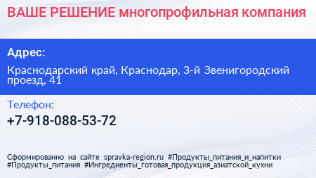ВАШЕ РЕШЕНИЕ, многопрофильная компания по адресу Краснодарский край, Краснодар, 3-й Звенигородский проезд, 41 в дальнейшем Организация, размещена в следующих категориях: