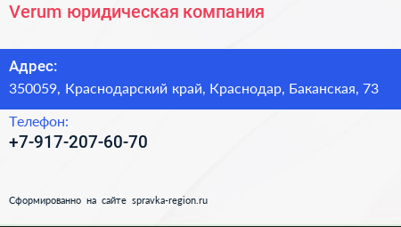 Verum, юридическая компания по адресу 350059, Краснодарский край, Краснодар, Баканская, 73 в дальнейшем Организация, размещена в следующих категориях:
