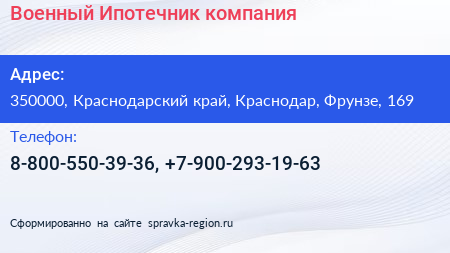 Военный Ипотечник, компания по адресу 350000, Краснодарский край, Краснодар, Фрунзе, 169 в дальнейшем Организация, размещена в следующих категориях: