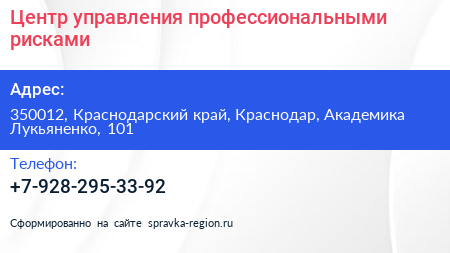 Центр управления профессиональными рисками по адресу 350012, Краснодарский край, Краснодар, Академика Лукьяненко, 101 в дальнейшем Организация, размещена в следующих категориях: