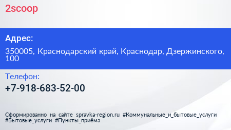 2scoop по адресу 350005, Краснодарский край, Краснодар, Дзержинского, 100 в дальнейшем Организация, размещена в следующих категориях: